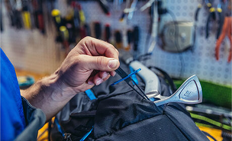 Game-changing ski-carry without removing the pack using the custom FastTrack friction hook system.